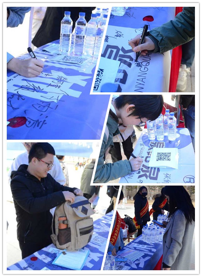 四月的長春雖已步入了春天,但天氣依舊寒冷,盡管志愿者們凍得瑟瑟發(fā)抖,但每個(gè)成員都積極地參加到活動(dòng)中,將源自長白山的泉陽泉天然礦泉水送至每個(gè)同學(xué)手中。